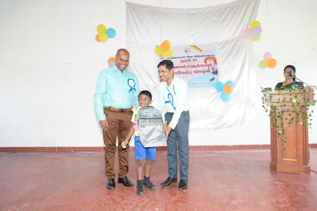 Distribution of School Bags for Grade 1 Students சமூக மாற்றத்திற்கான செயற்பாடுகளூடாக தேவைப்பாடுடைய பிரதேசங்களை மையப்படுத்தி தமது செயற்பாடுகளை முன்னெடுத்து வரும் விவேகானந்த சமுதாய அறக்கட்டளையானது வருடாந்தம் மாணவர்களுக்கான கற்றல் உபகரணங்களை அவர்களின் கோரிக்கைக்கமைவாக வழங்கி வருகின்றது.