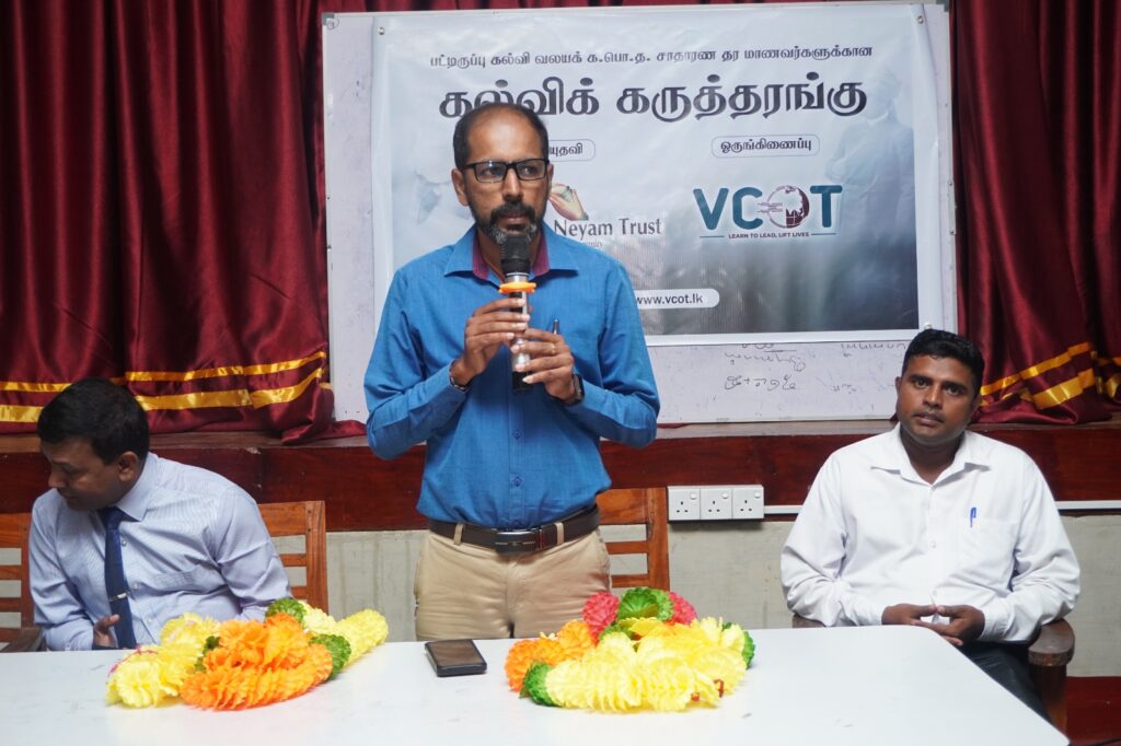 On the occasion of Swami Vivekananda’s 164th birthday, Manitha Neyam Trust and Vivekananda College of Technology (VCOT) jointly launched a special educational support program for students preparing for the G.C.E. (O/L) examinations.