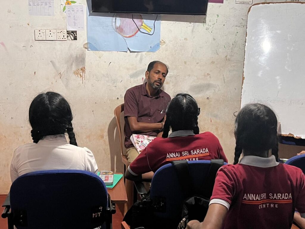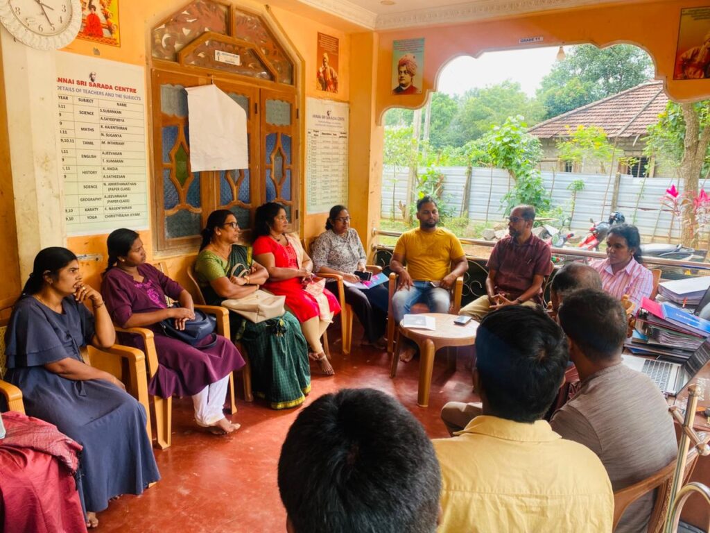 During the visit, the VCOT team met with students benefiting through Annai Sri Sarada Nilayam and engaged in discussions with students and teachers to understand the students’ current academic performance and the additional needs required for their future development. Discussions were also held with teachers regarding the growth of the Sarada Nilayam and its future development plans.